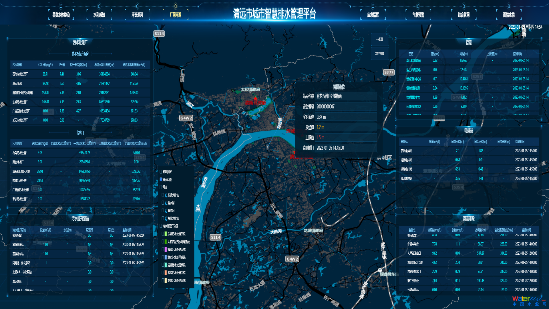 核心提示:清遠智慧排水項目 發(fā)表時間:2023-01-15 19:52 清遠市黑臭水體監(jiān)管需求較為強烈,暴雨導致的城市內澇嚴重。 利用清遠市排水信息化管理系統(tǒng),以GIS技術為核心,綜合運用在線監(jiān)測技術、Web技術、物聯(lián)網技術等先進技術手段,建設直觀、量化的澇情監(jiān)測平臺和發(fā)布平臺,實現(xiàn)清遠市排水信息的數(shù)據(jù)化管理、生產運行狀態(tài)的在線監(jiān)測、業(yè)務管理的流程化。并通過對監(jiān)測數(shù)據(jù)分析,提高應急管理、規(guī)劃管理、聯(lián)合調度等決策分析能力。同時綜合考慮數(shù)據(jù)共享的問題,建立統(tǒng)一的數(shù)據(jù)接口和數(shù)據(jù)標準,以實現(xiàn)相關的數(shù)據(jù)共享和數(shù)據(jù)服