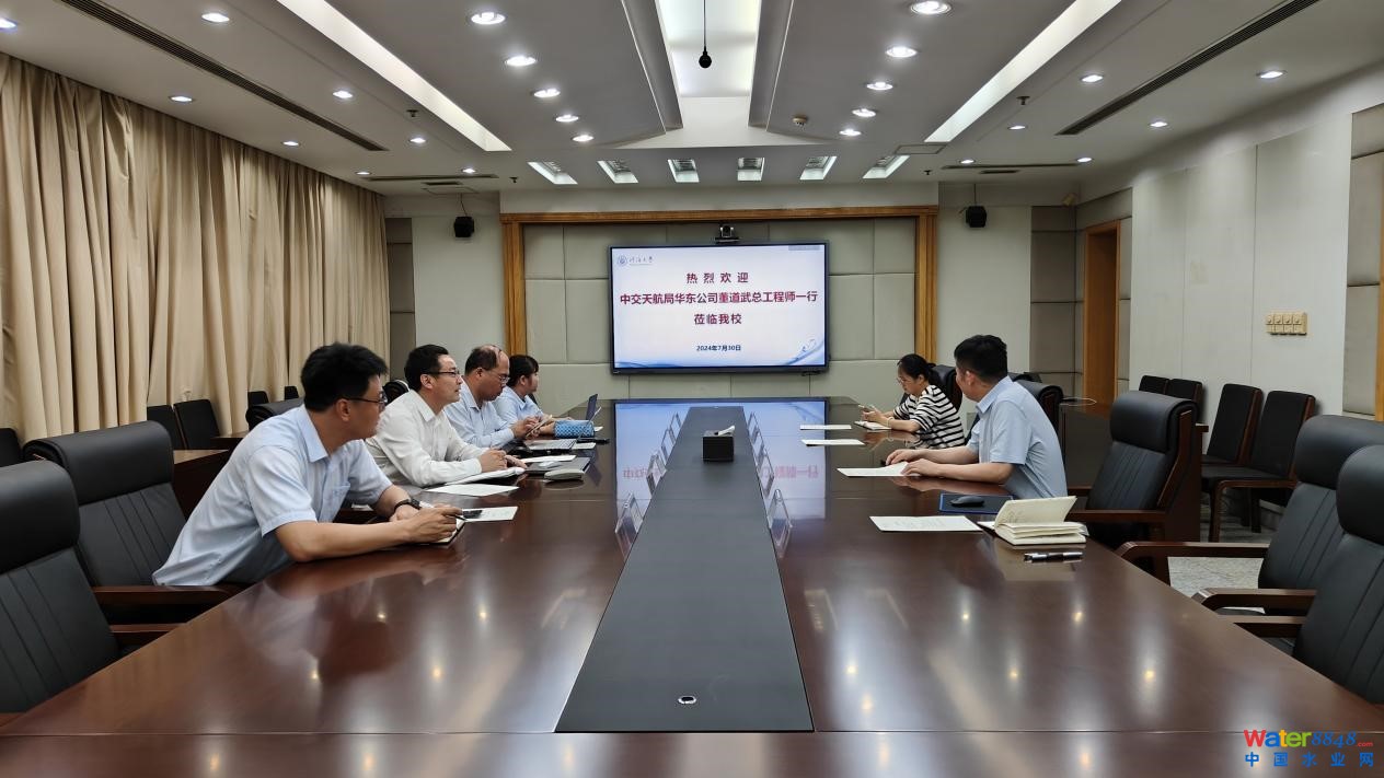 近日,中交天航局華東公司董道武總工程師一行來河海大學對接交流。科技處處長沈德建主持會議。