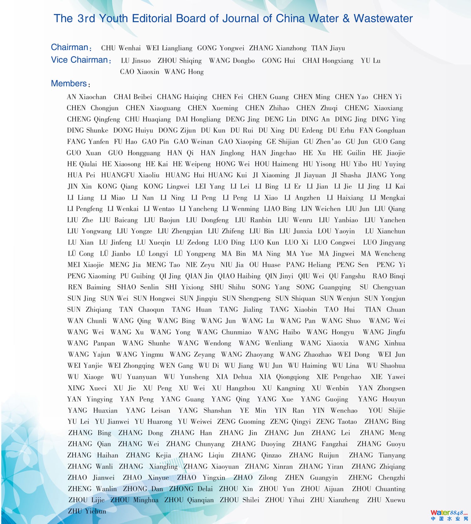 核心提示:《中國給水排水》雜志第九屆編輯委員會-《中國給水排水》第九屆編輯委員會-《中國給水排水》雜志第三屆青年編輯委員會-《中國給水排水》第三屆青年編輯委員會